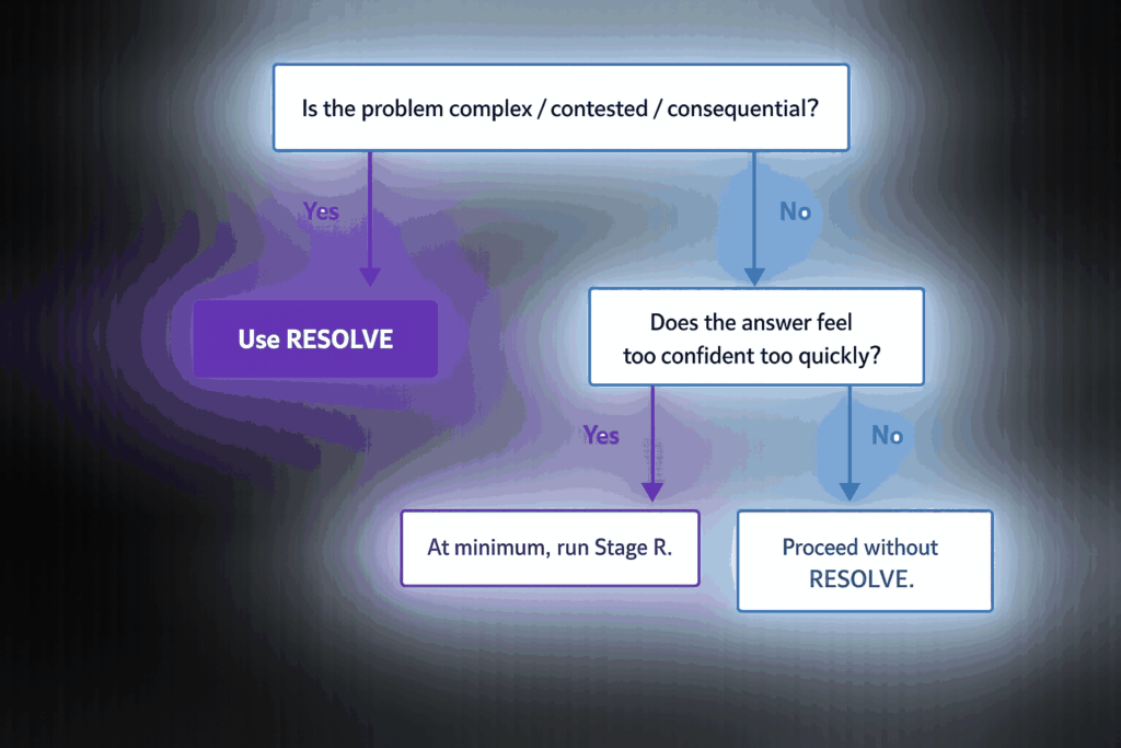 RESOLVE is not a universal one-shot answer engine. Better prompting can improve many first-pass outputs. RESOLVE is for the harder cases — where the issue is complex, contested, ambiguous, or consequential, and where disciplined iteration produces materially better results than fast first answers.